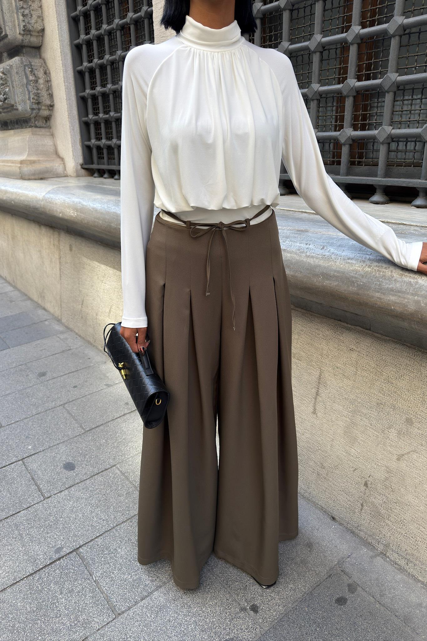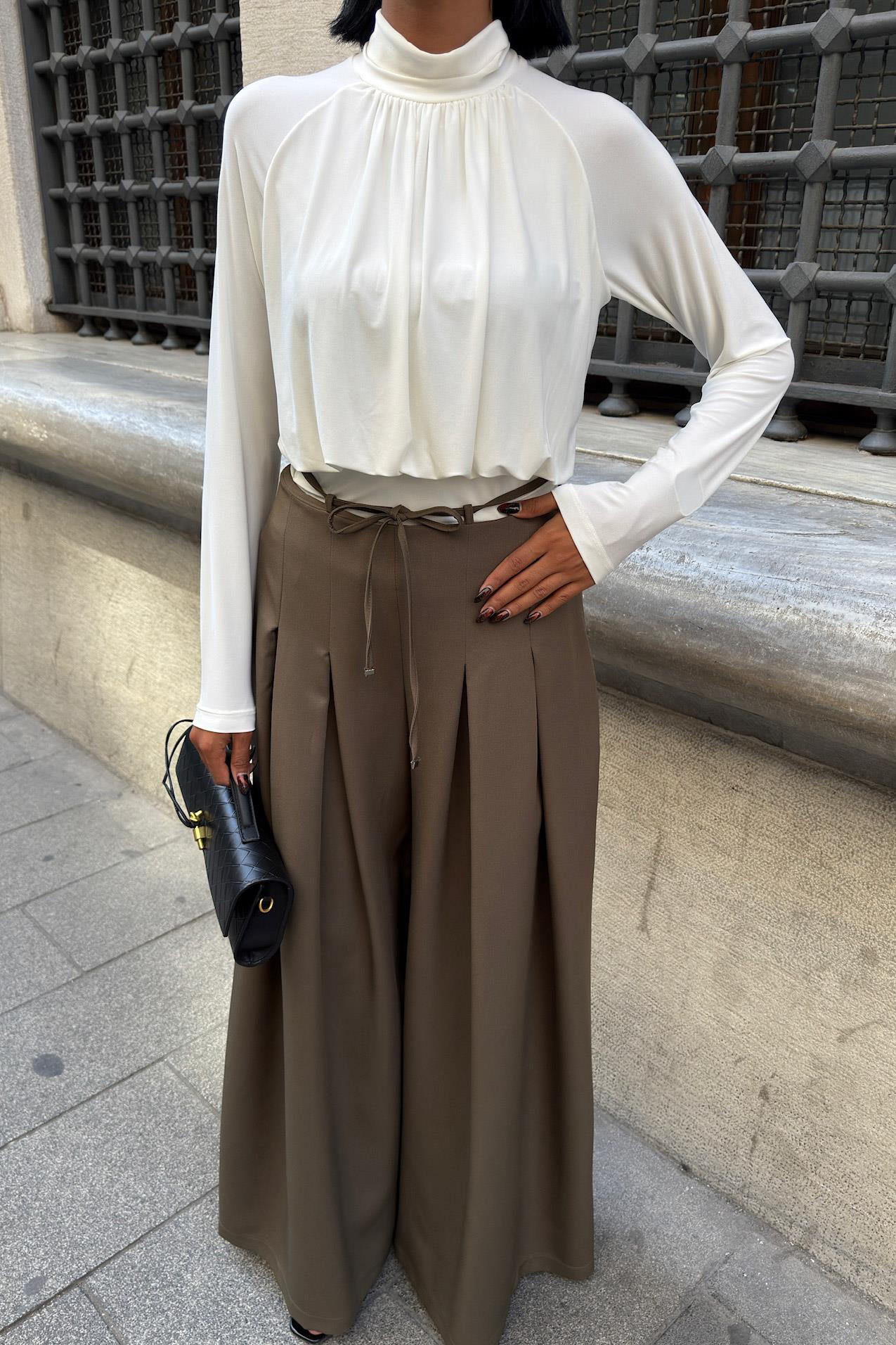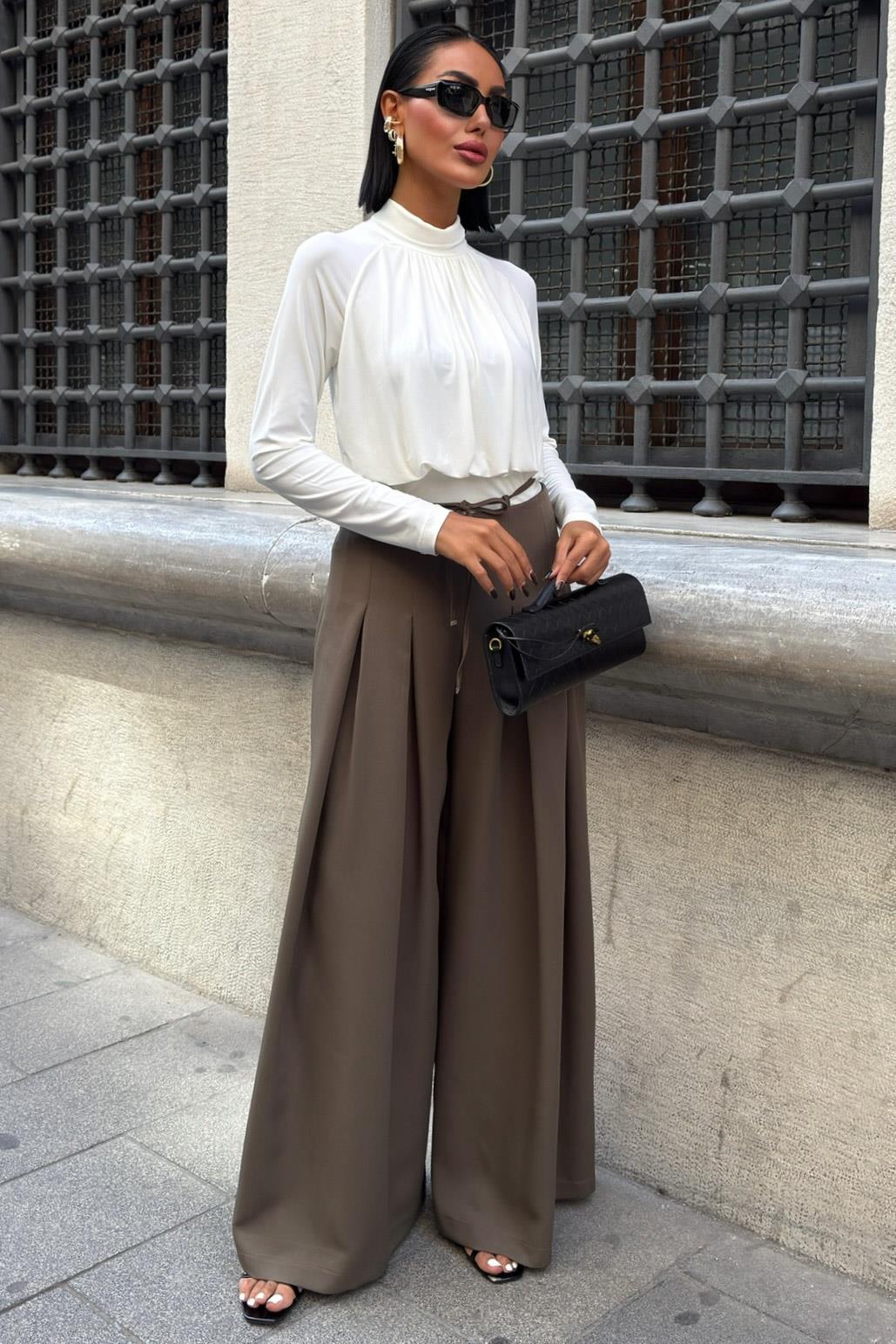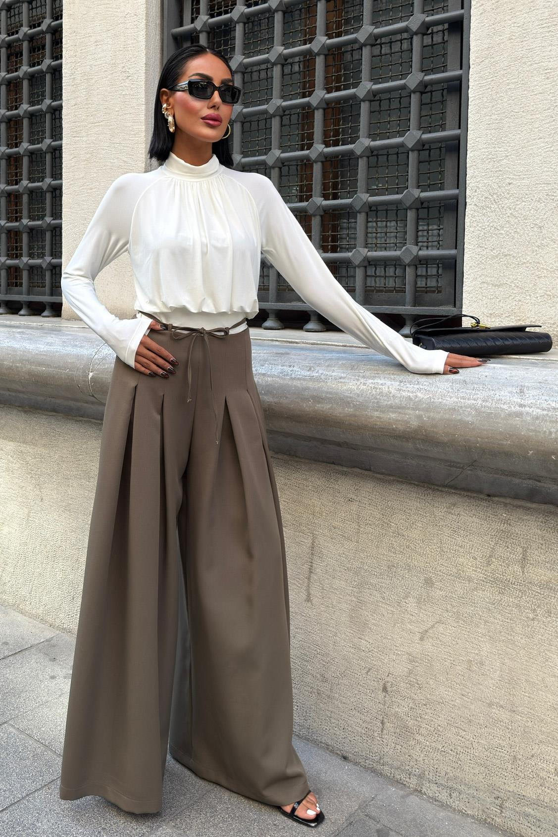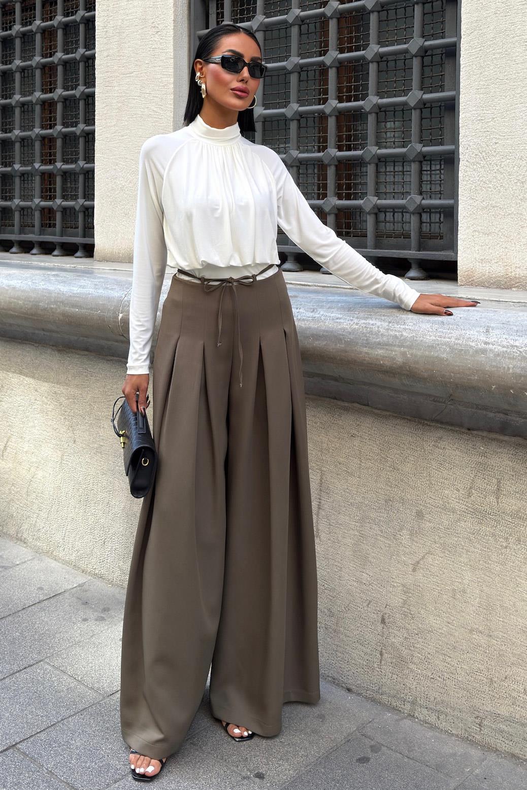 Bel Bağlama Detaylı Pileli Salaş Pantolon 0084 R9-G-K5 (S6K0084)
