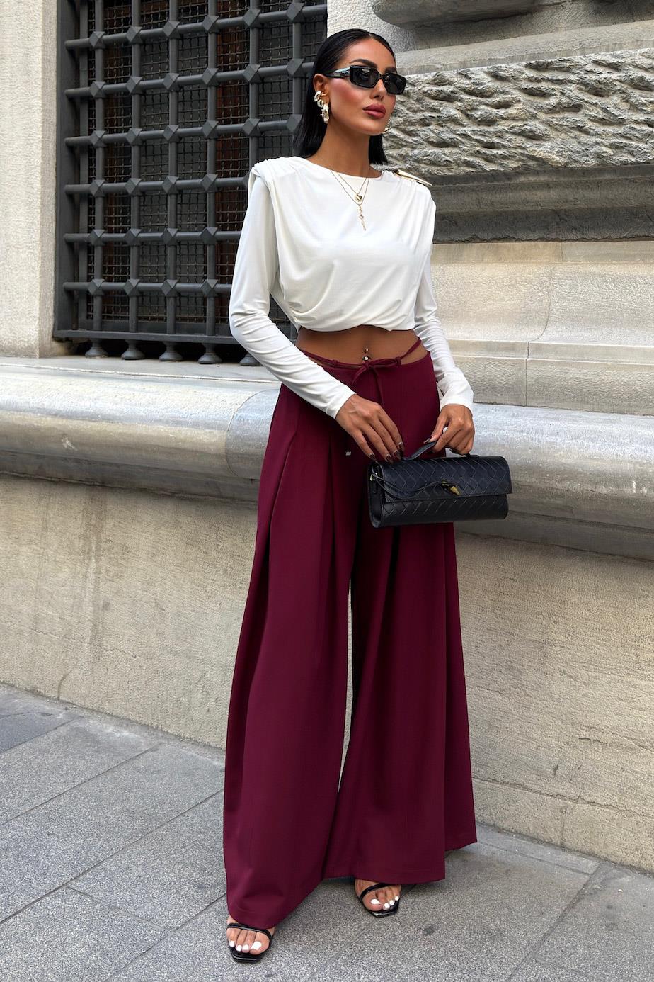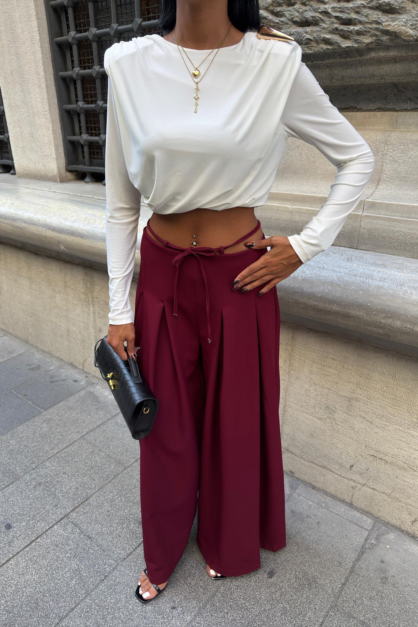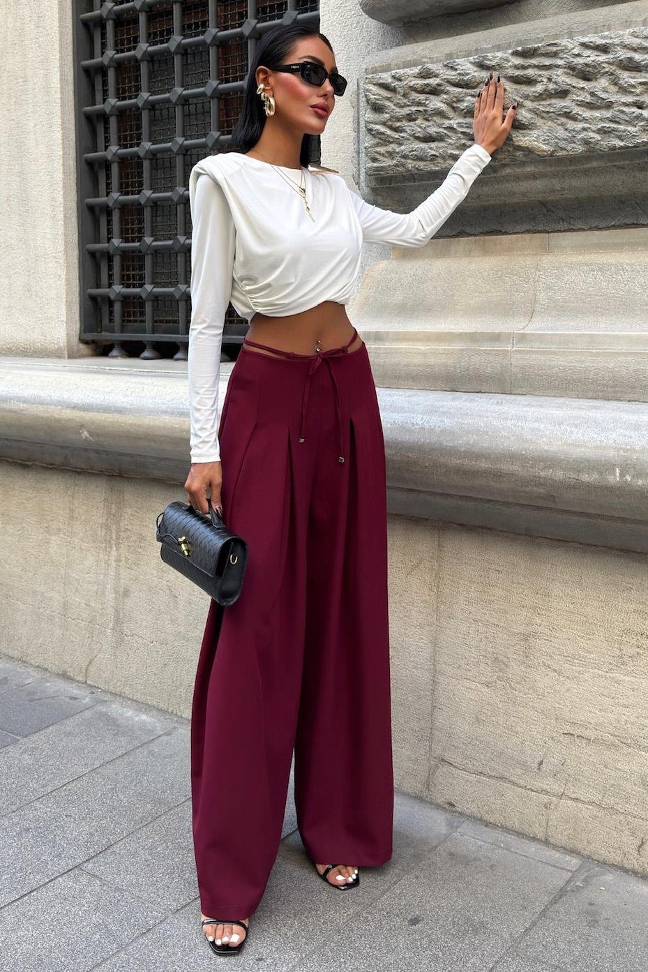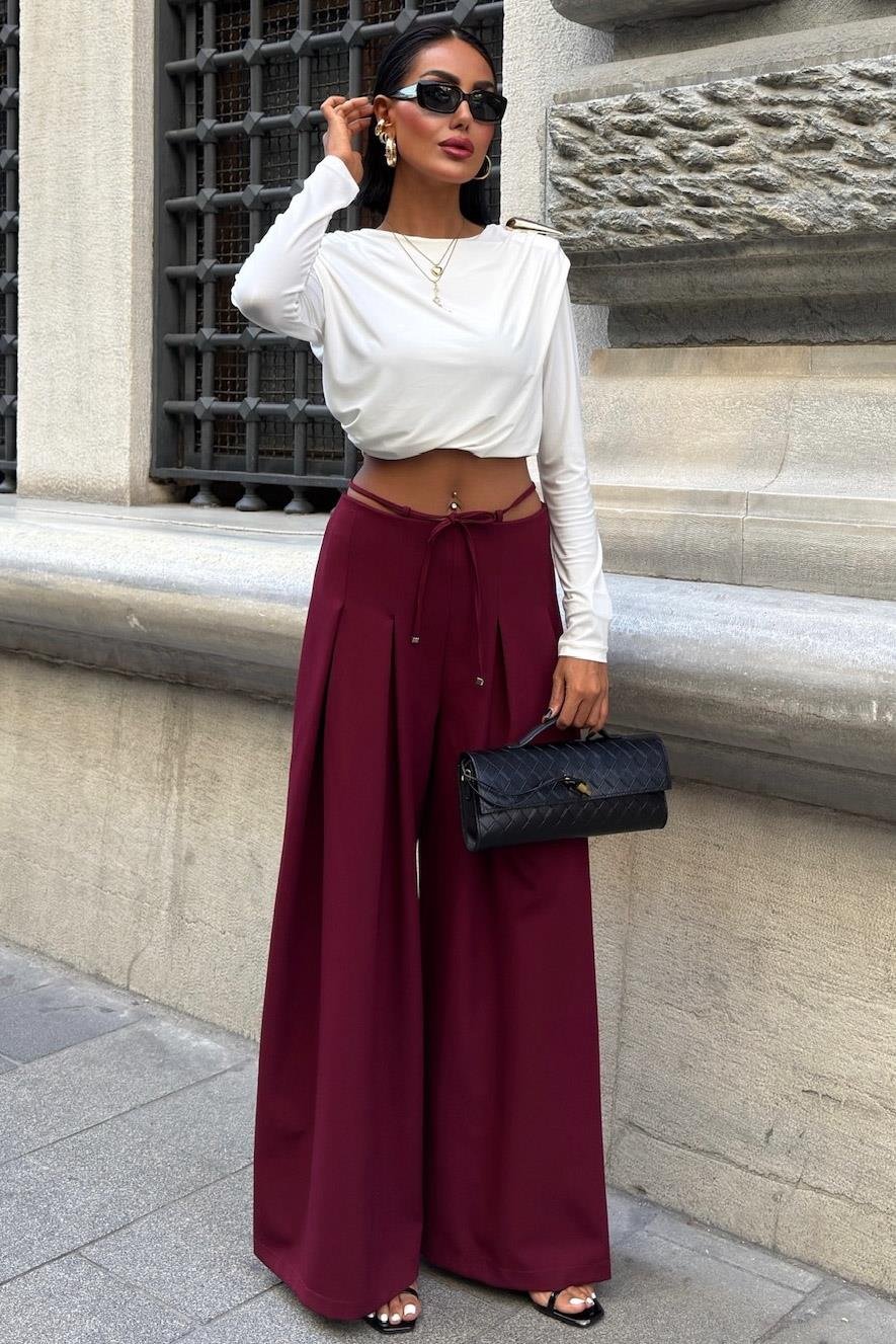 Bel Bağlama Detaylı Pileli Salaş Pantolon 0084 R9-G-K5 (S6K0084)