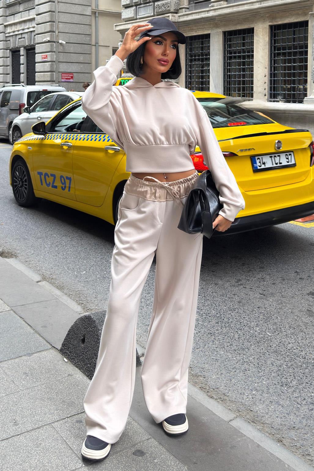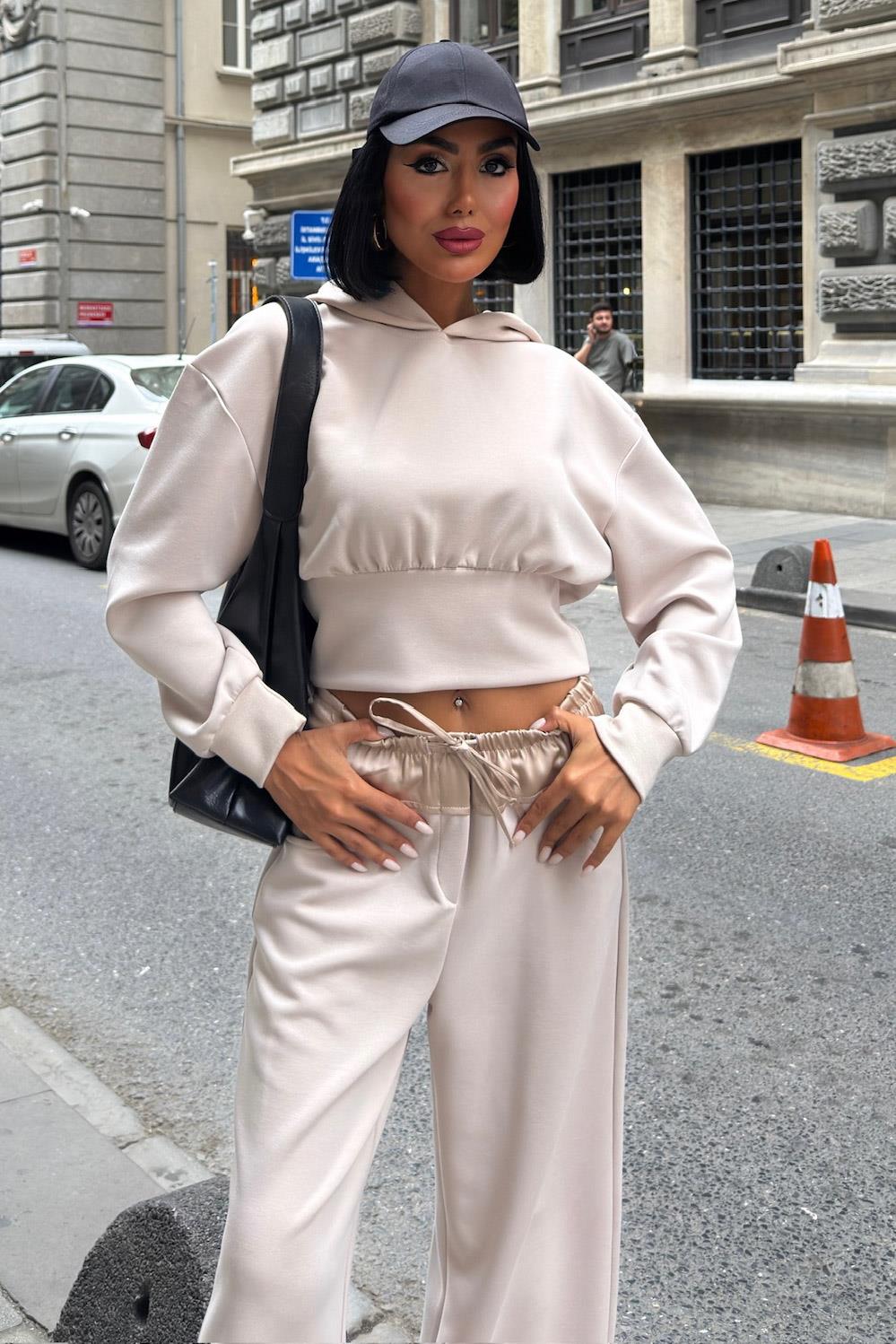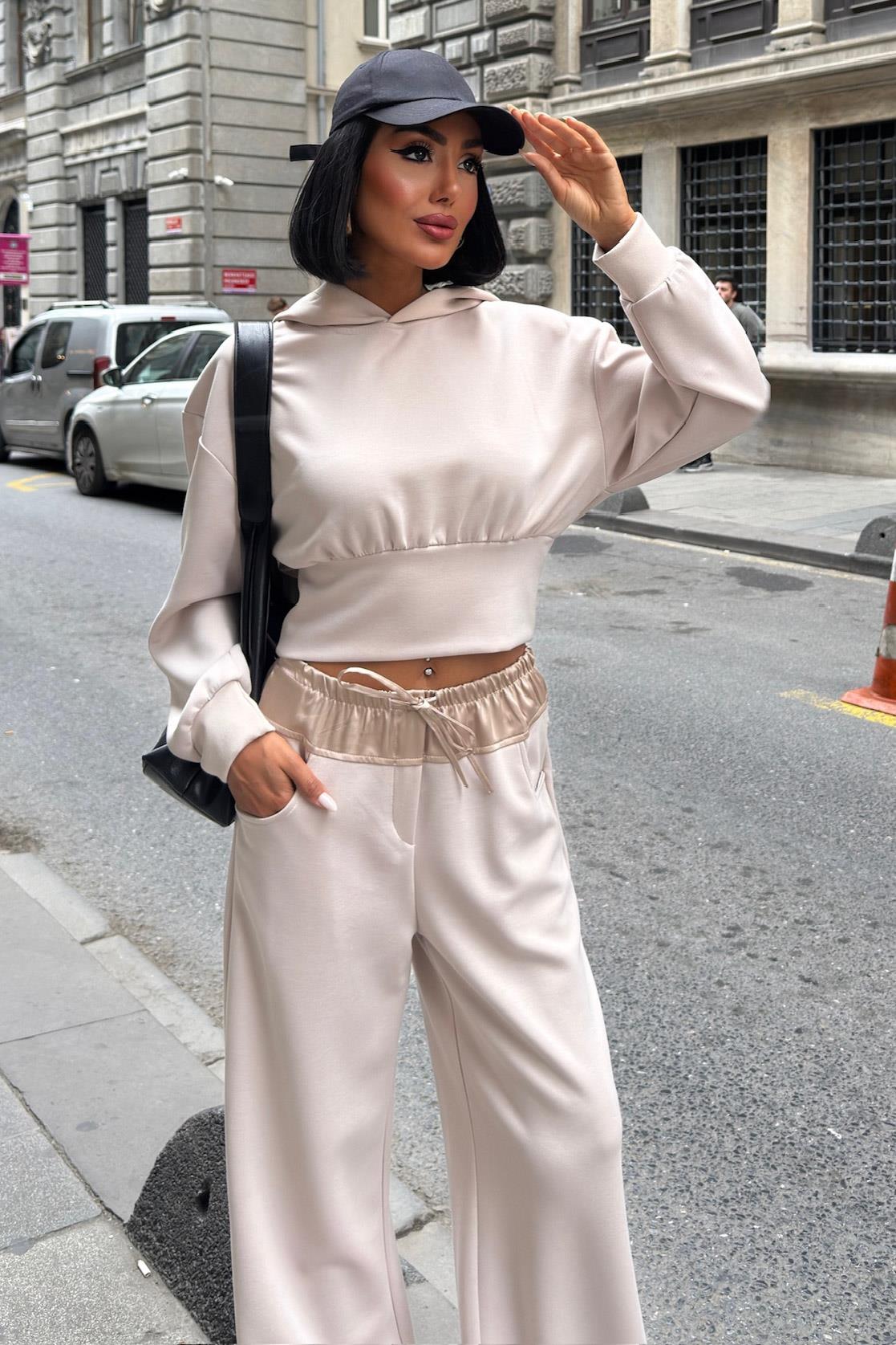 Beli Saten Detaylı Kapüşonlu Modal Takım 10242 (S6K10242)