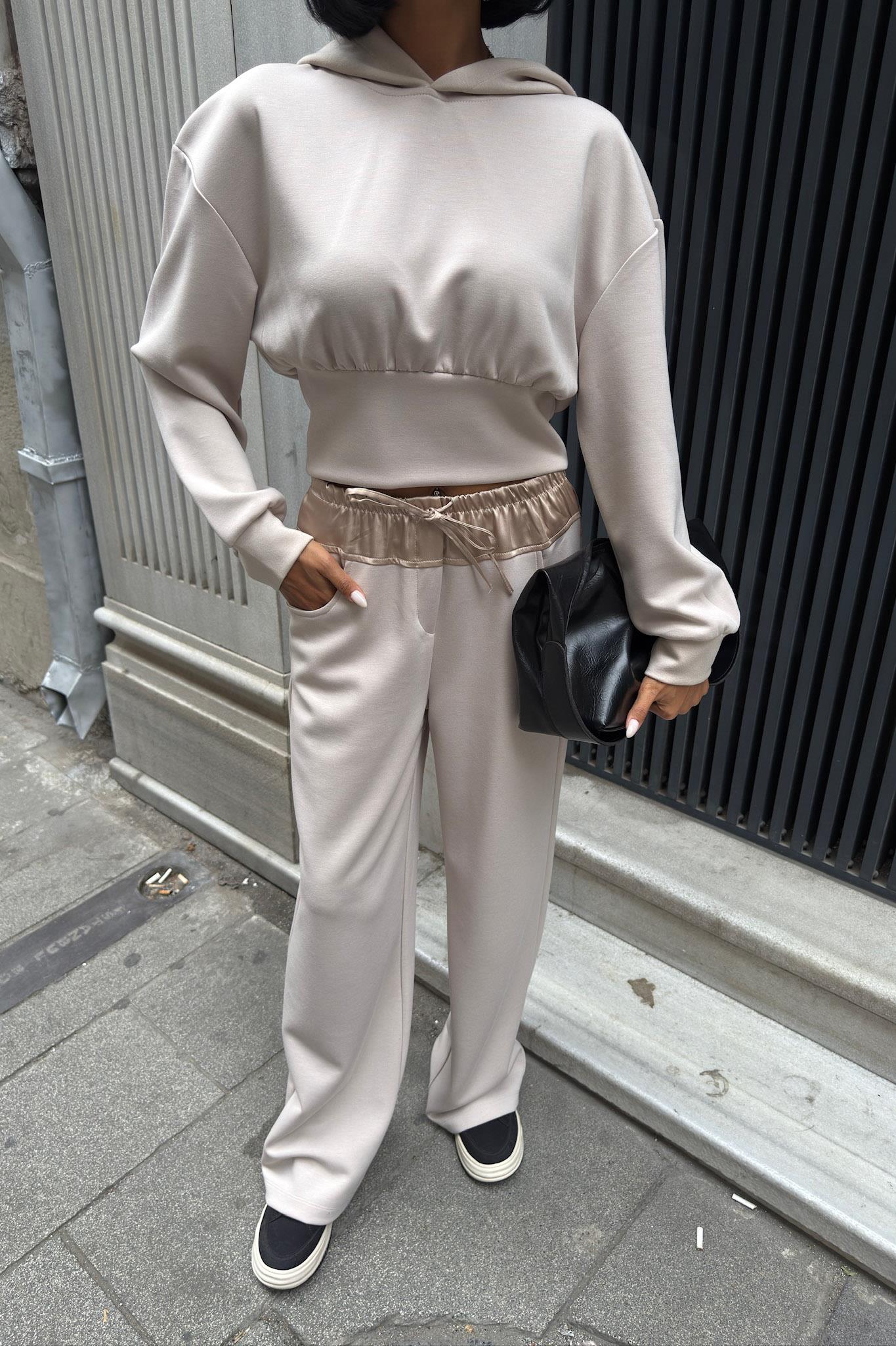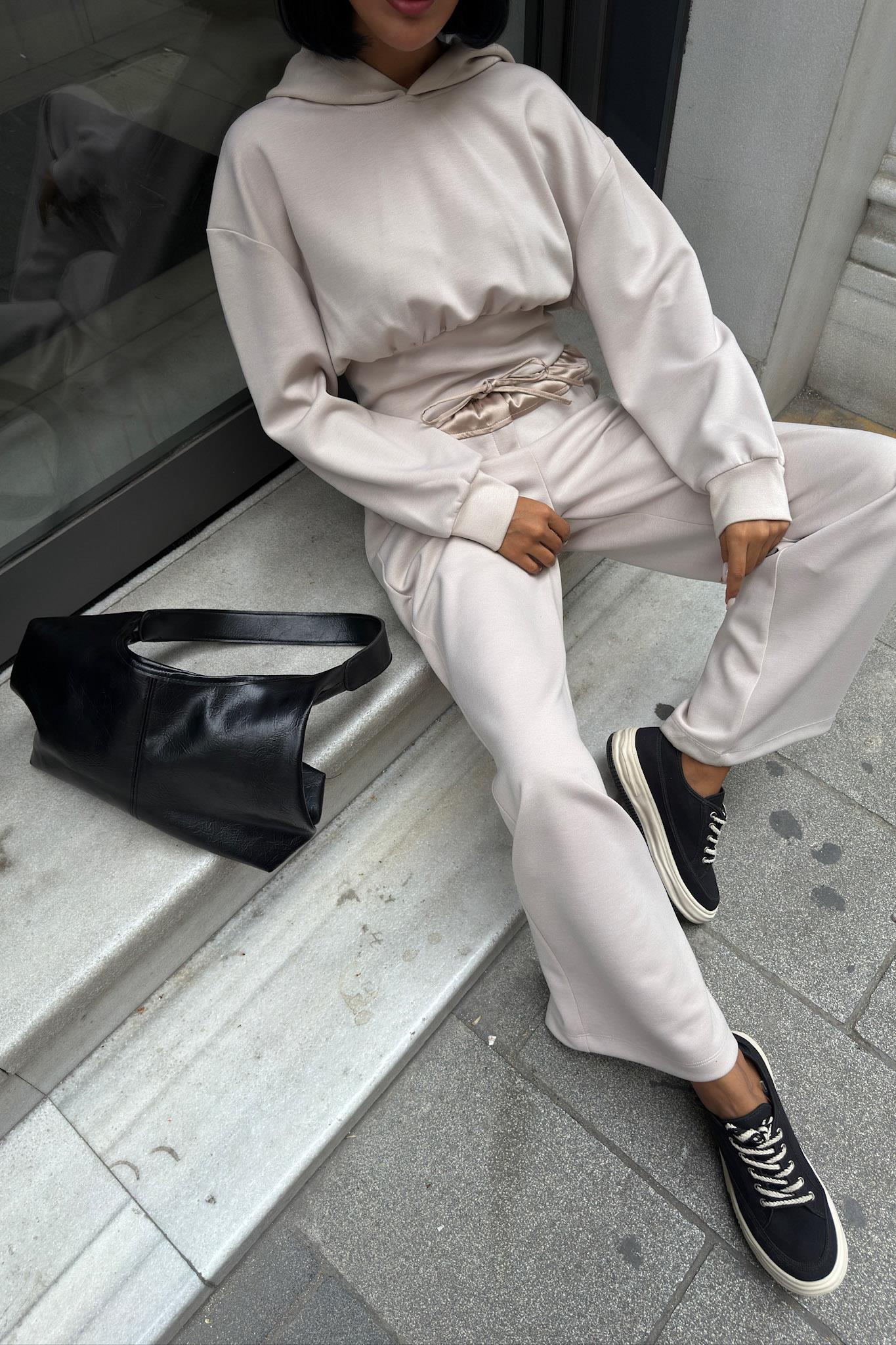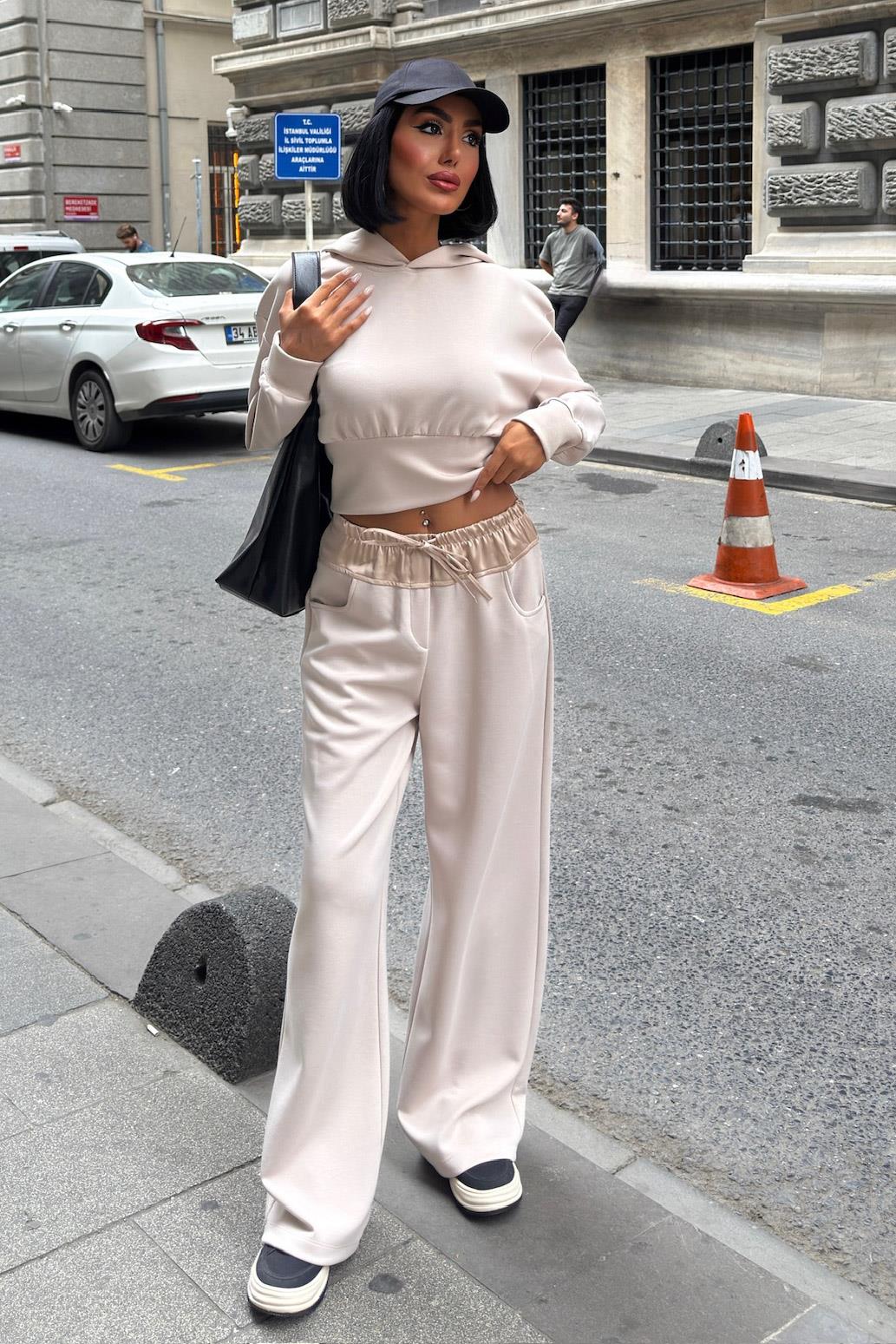 Beli Saten Detaylı Kapüşonlu Modal Takım 10242 (S6K10242)