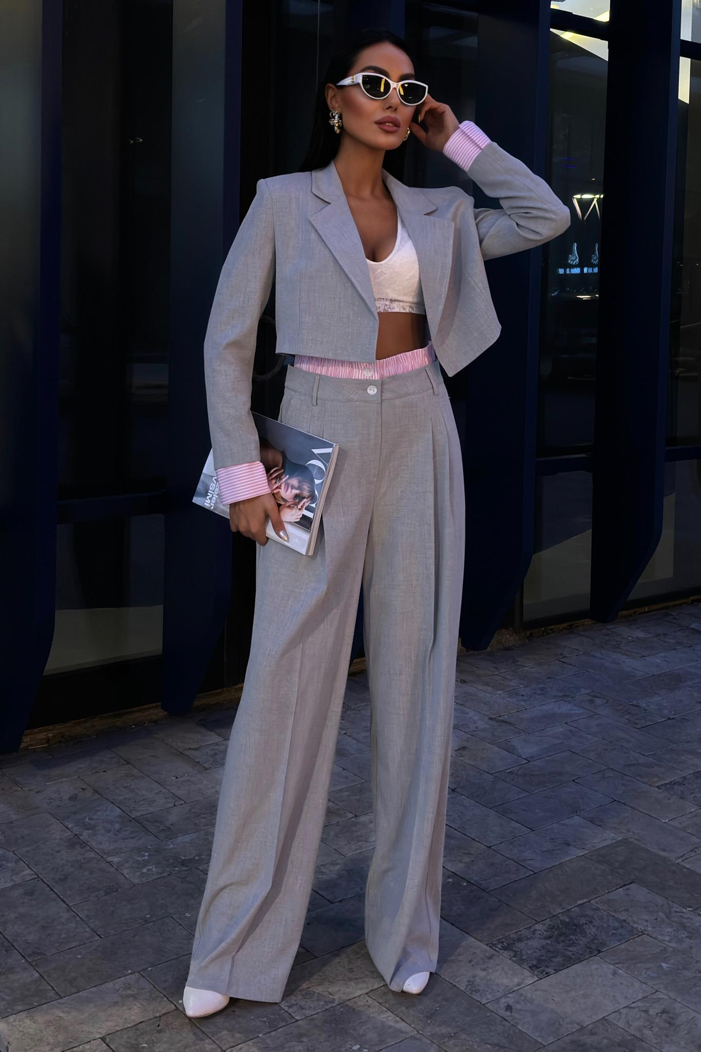 Garni Detaylı Crop Ceketli Takım 10075 R9-I-K3 Garni Detaylı Crop Ceketli Takım 10075 R9-I-K3 Garni Detaylı Crop Ceketli Takım 10075 R9-I-K3